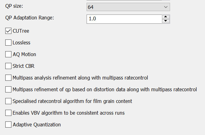 This is recommended for 8-bit encodes or low-bitrate 10-bit encodes, to prevent color banding/blocking. - AQ enabled with auto-variance and edge information.