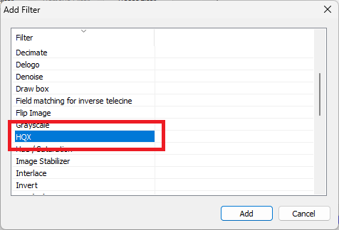 You can add the HQX filter using the "Add filter" button.